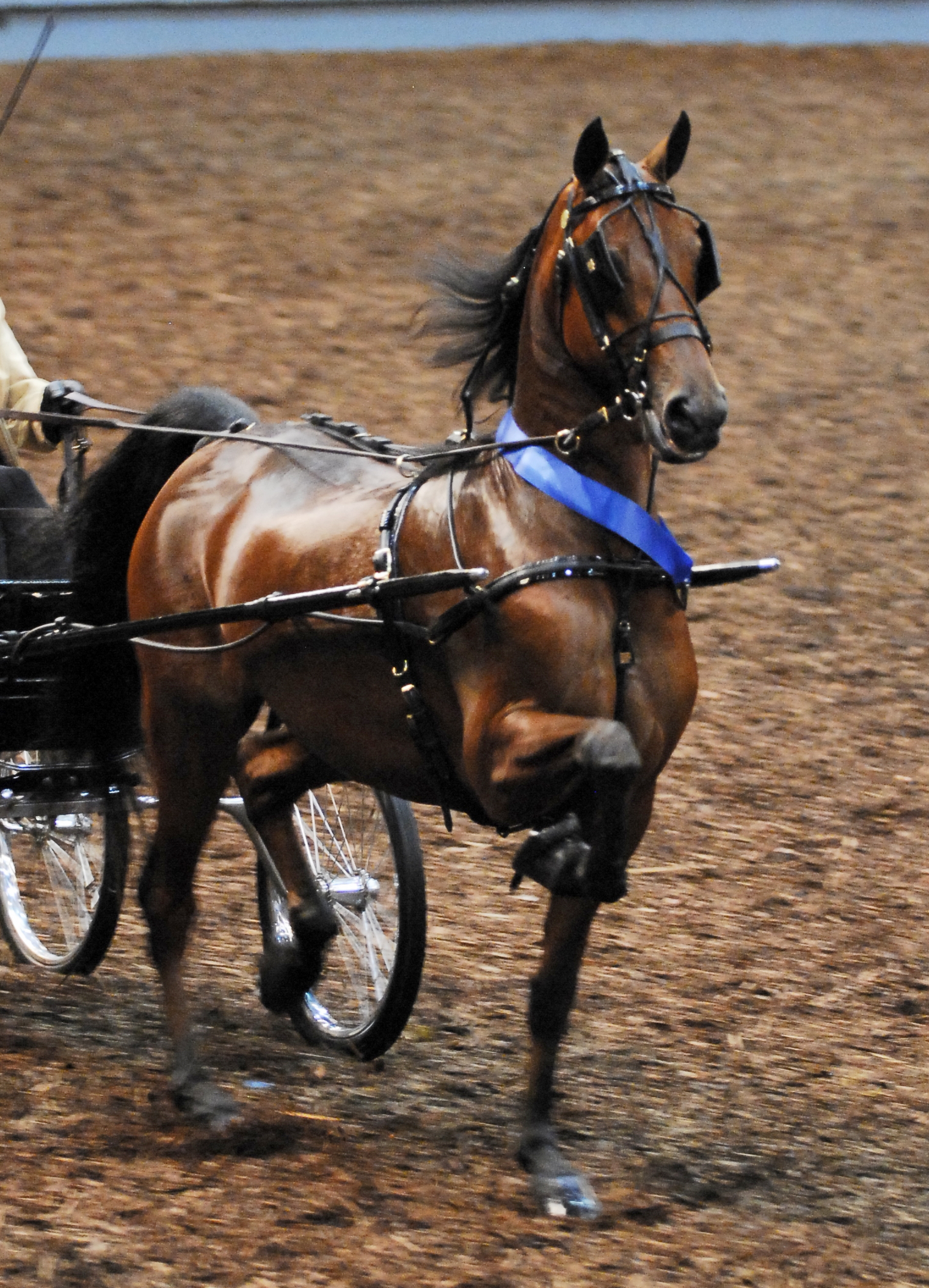 SOLD. Grand National Champion Two Year Old Park Harness (Mare and Gelding). Samadhi (bay mare, 2006, Mizrahi x JW Celebrity) was Jubilee Regional Park Harness Champion and Grand National Park Harness Mare and Gelding Champion 2008. Lightly shown, this mare is ready for an amateur in harness or to show under saddle. Extremely correct, with great hocks and a square, true gait, Samadhi will serve you equally well in the breeding shed with her distinguished pedigree.