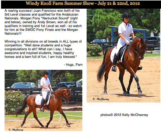 Cool or What! Nantucket Sound (2006 Morgan gelding by Nantucket x WGF Cajun Flaire) is by Nantucket (1999 Morgan stallion by UVM Springfield x Bellmara Tiffany) and has already won World Championships in Morgan Reining. Here he is distinguishing himself (and his family) in Dressage.